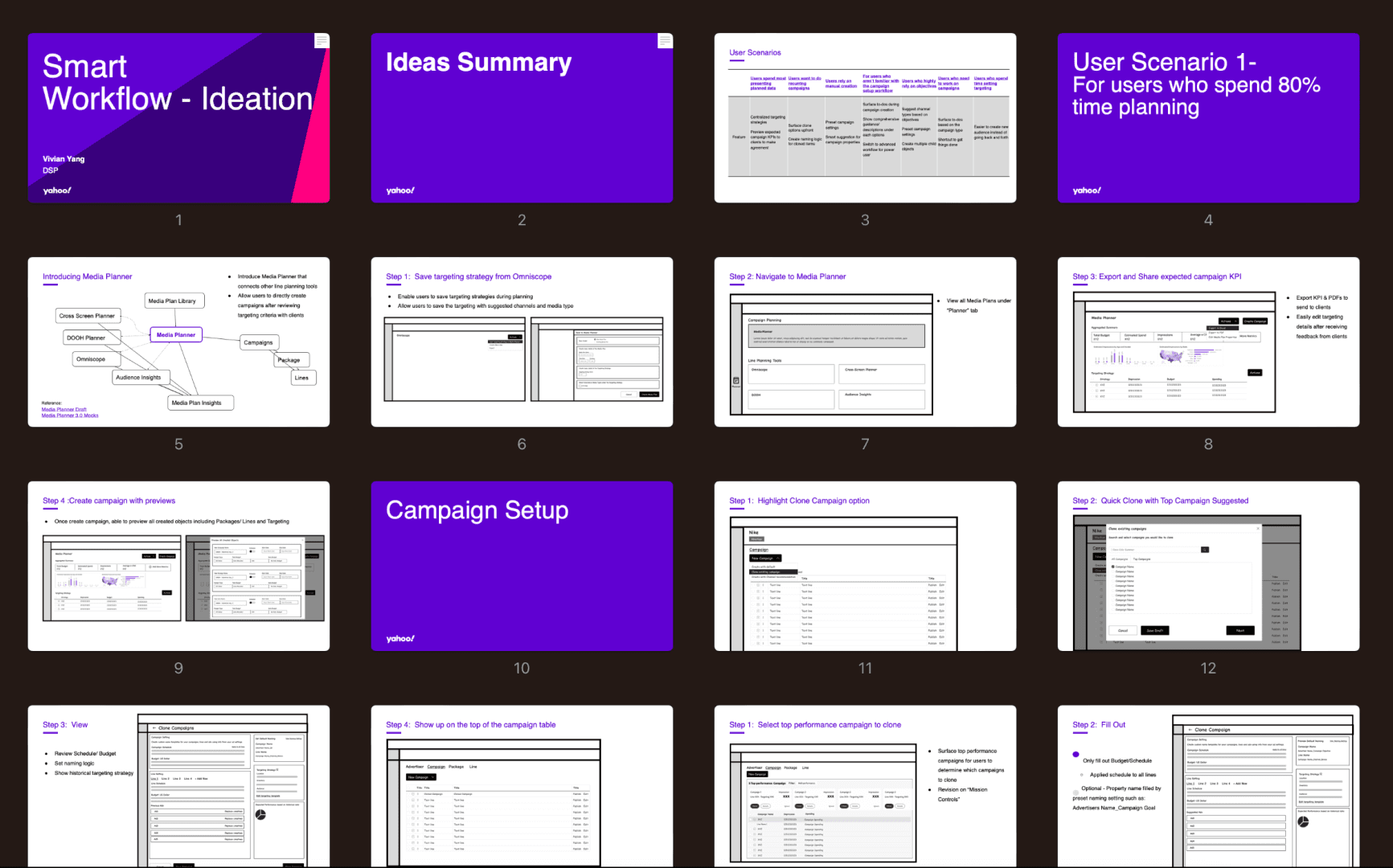 The team wanted to redesign the existing Campaign Creation experience on Yahoo DSP (Demand Side Platform) for advertisers. As the Product Designer who leads this project, with the collaboration from PM and an UX Researcher for usability testing and preliminary user research, two key user flows were designed and iterated to meet user needs and goals identified from user research and usability study.